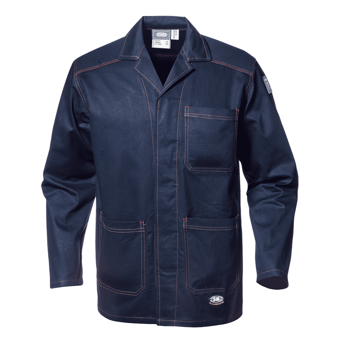 100% Massaua "beavatott" pamutból, 280 g/m². Tripla varrás a vállakon. Rejtett gombolás 4 db gombbal; két oldalzseb és egy mellzseb; egy darab gombos farzseb; rugalmas derékrész. Mechanikai hatásoknak ellenálló.