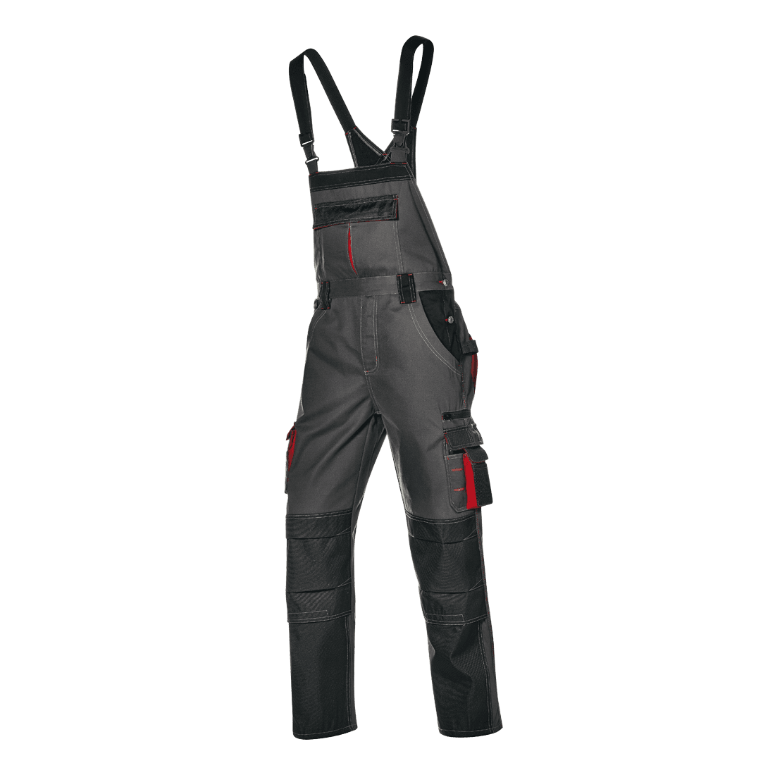 Kantáros nadrág 65% poliészterből és 35% pamutból, 300 g/m². Rugalmas, állítható vállpántok; rugalmas derékrész; két ferde zseb; D-gyűrű a jobboldalon; patentos, fedett mellzseb; cipzáras slicc; fedett, patentos farzsebek; dupla mérőszalag zseb a jobboldalon; a baloldalon szerszámtartó fül és két zseb, az egyik cipzárral a másik tépőzáras fedéssel. Megerősített térdzsebek, dupla varrás.