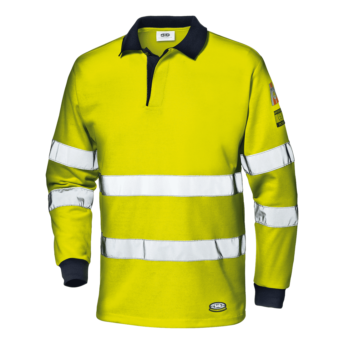 Lángálló, antisztatikus, galléros, gombos, hosszú ujjú pólóing. Fényvisszaverő csíkok a mellkason és az ujjakon.