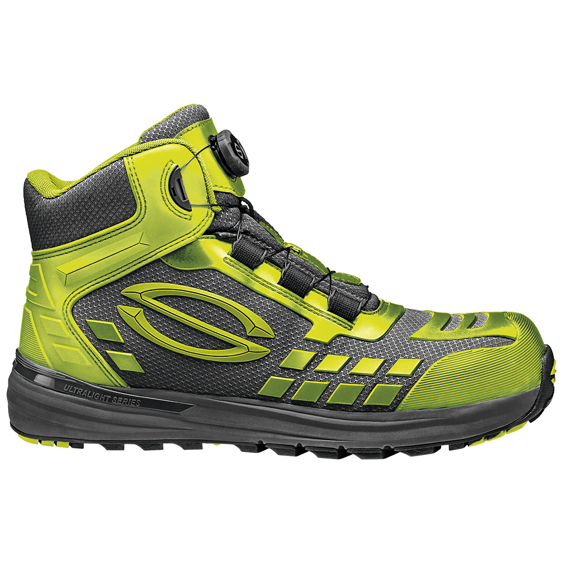 Felső rész: nejlon. Bélés: poliészter. Lábujjkapli: üvegszál. Talpbélés: kétkomponensű, poliuretán- és memória habos anyagból, különböző vastagságokkal: lábujjaknál 4 mm, saroknál 9 mm. Jelentős rezgéselnyelő képességgel. Antisztatikus.