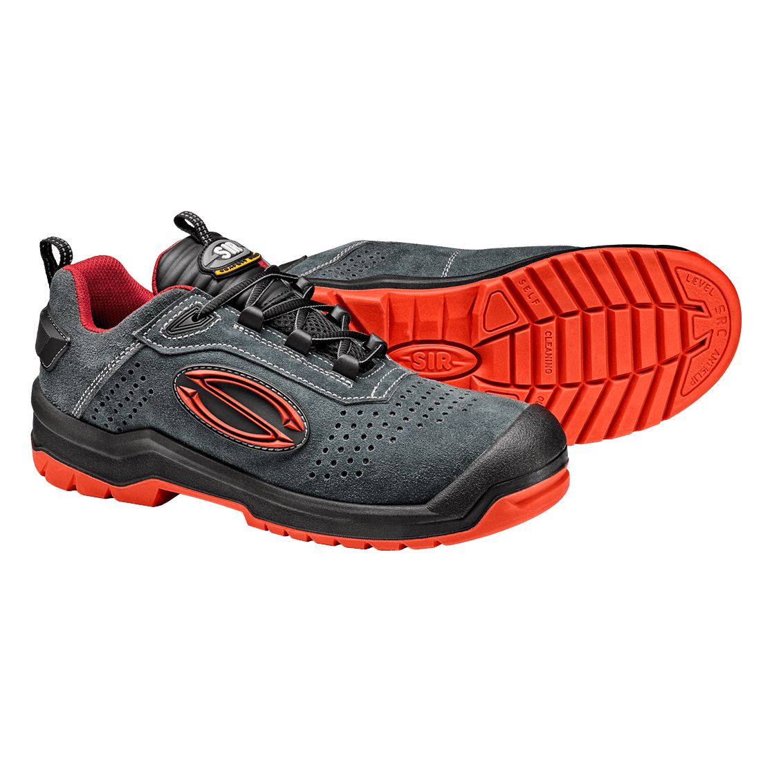 Acél lábujj- és talpátszúrás elleni védelem (200 J), perforált bőr felső réteg.