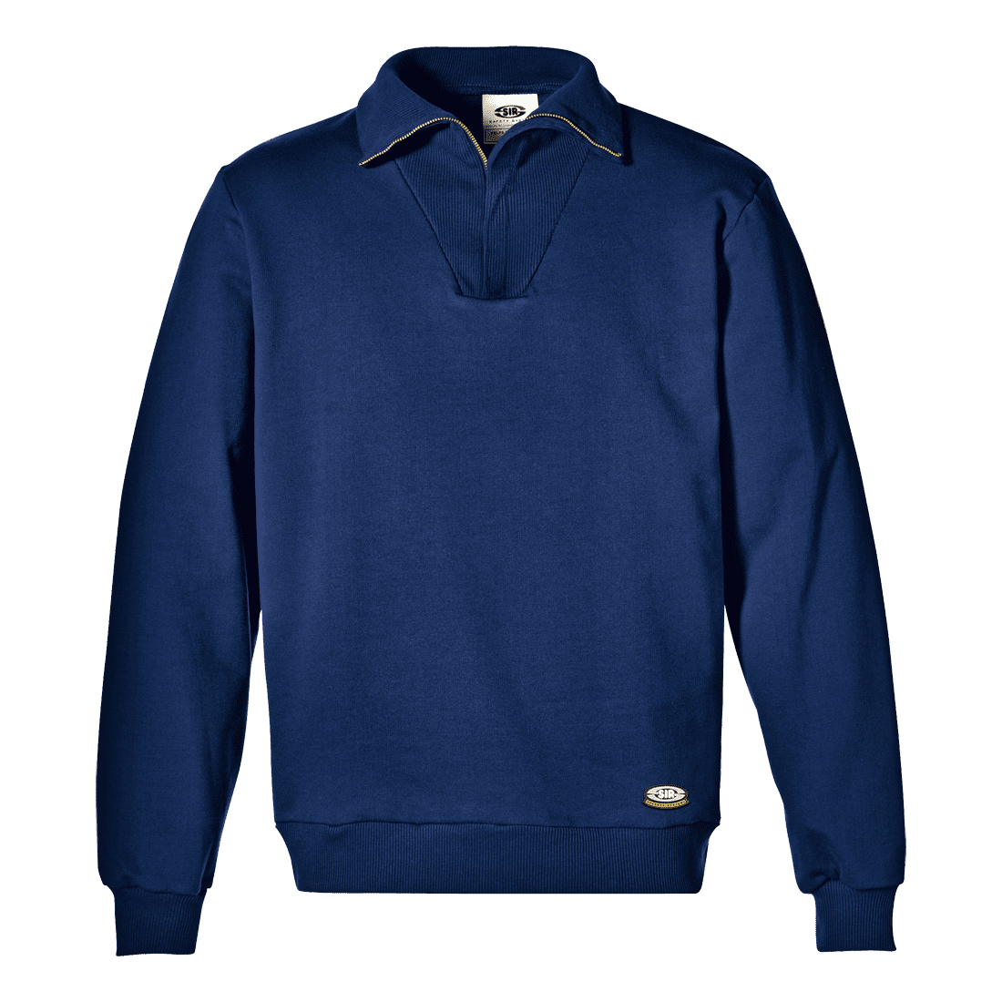53% modakrilból, 44% pamutból és 3% antisztatikus szálból készült (360 g/m²) lángálló, antisztatikus pulóver. Rejtett, fémcipzáras gallérral, rugalmas mandzsettával és derékrésszel.