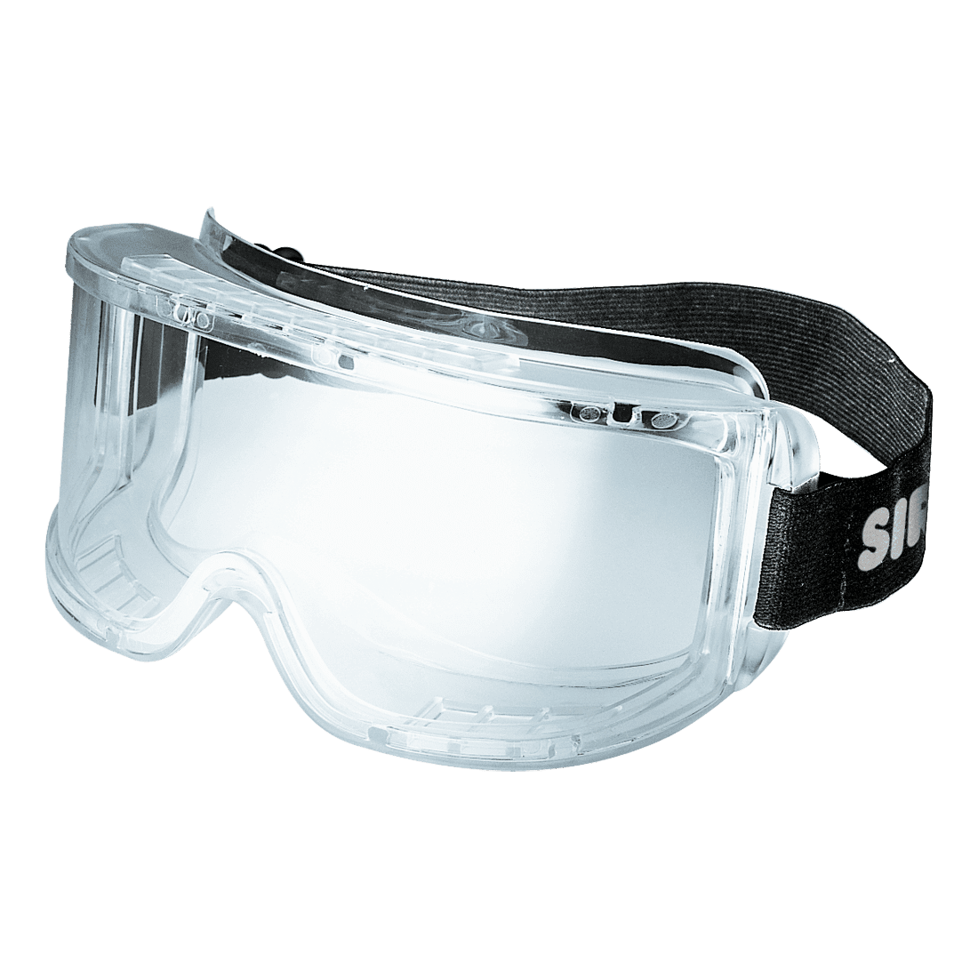Védőszemüveg állítható, rugalmas fejpánttal, szellőzőnyílásokkal, és az archoz illeszkedő belső résszel; párásodás elleni kezeléssel.