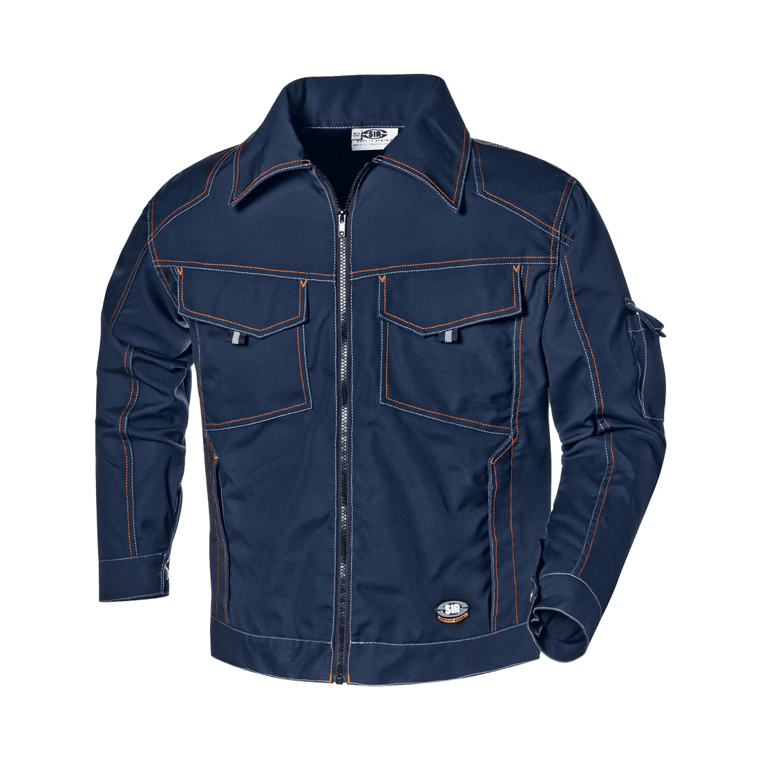 Dzseki, 65% poliészterből és 35 % pamutból, 310 g/m². Cipzáras; két fedett, tépőzáras mellzseb; két függőleges nyílású zseb rejtett cipzárral; patentos mandzsetták; patenttal állítható derékrész; dupla varrás.