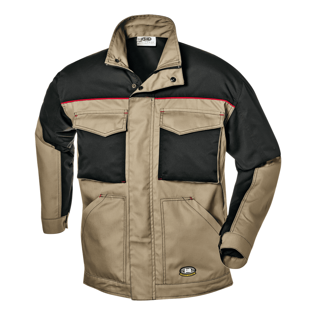 100% Massaua pamutból készült dzseki, 280 g/m². Rejtett cipzár; magasított gallér rejtett cipzárral és patentokkal; két tépőzáras, fedett mellzseb; patentos mandzsetták; dupla varrás.