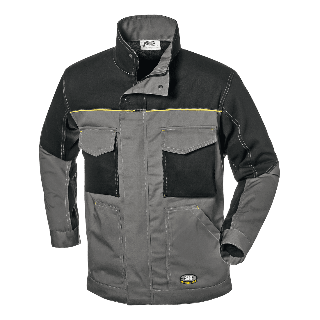100% Massaua pamutból készült dzseki, 280 g/m². Rejtett cipzár; magasított gallér rejtett cipzárral és patentokkal; két tépőzáras, fedett mellzseb; patentos mandzsetták; dupla varrás.