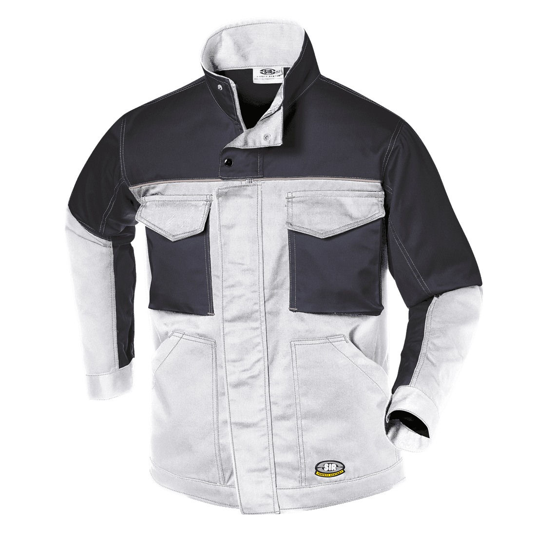 100% Massaua pamutból készült dzseki, 280 g/m². Rejtett cipzár; magasított gallér rejtett cipzárral és patentokkal; két tépőzáras, fedett mellzseb; patentos mandzsetták; dupla varrás.