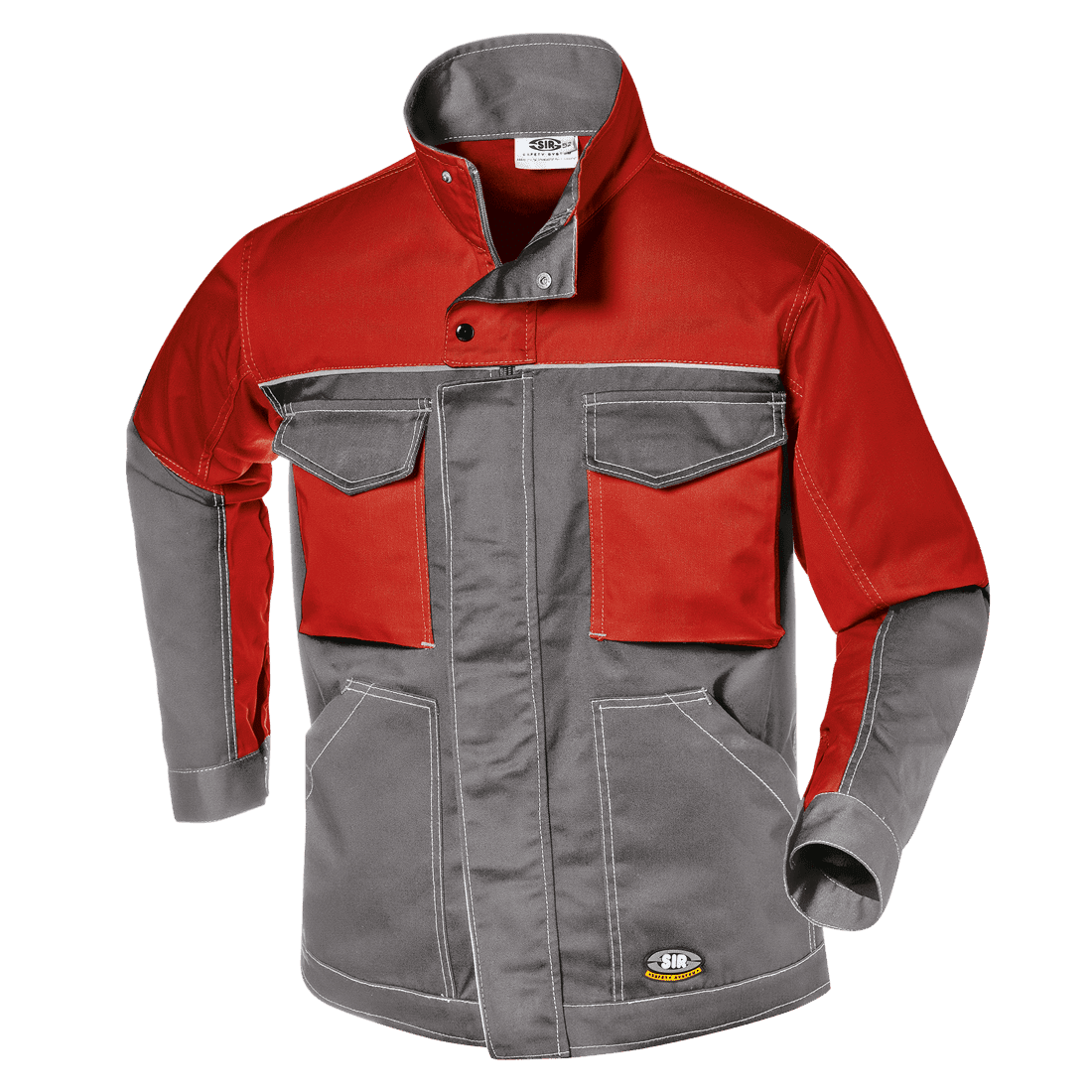 100% Massaua pamutból készült dzseki, 280 g/m². Rejtett cipzár; magasított gallér rejtett cipzárral és patentokkal; két tépőzáras, fedett mellzseb; patentos mandzsetták; dupla varrás.