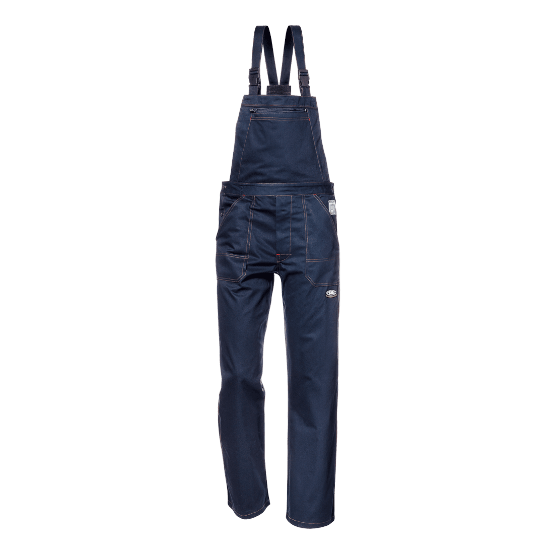 100% Massaua "beavatott" pamutból, 280 g/m². Tripla varrás a lábak külső oldalán és a kantáron. Elülső zsebek megerősített varrással, farzsebek és colostok zseb a jobb oldalon, dupla mellzseb, rugalmas vállpántok, rugalmas derékrész. Mechanikai hatásoknak ellenálló.