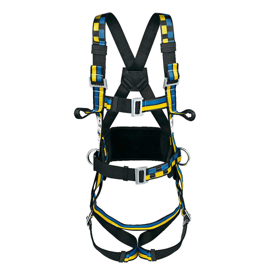 Kikötési pont: 2 db hevedergyűrű a mellkasnál, 1 db D-gyűrű a háton, 2 db oldal D-gyűrű a csípőnél. Állítható mellkasi pánt és lábpántok, valamint állítható deréköv. Ülőpánt a kényelmes munkavégzésért.