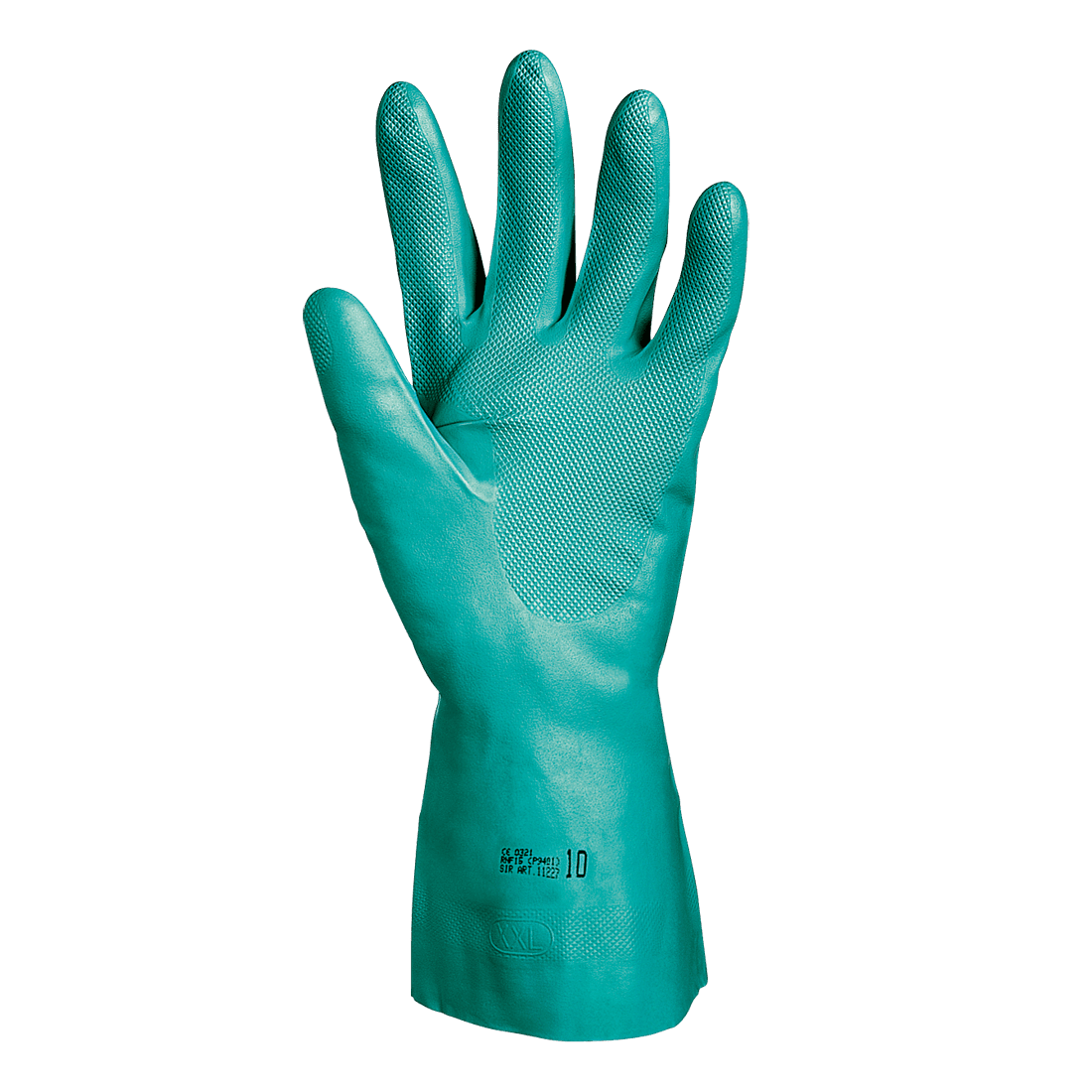 0,4 mm vastag, 33 cm hosszú, nitril kesztyű. Kiváló kémiai védelem számos veszélyes anyaggal szemben, tökéletes rugalmasság és kényelem. Élelmiszeripari tevékenységhez is használható.