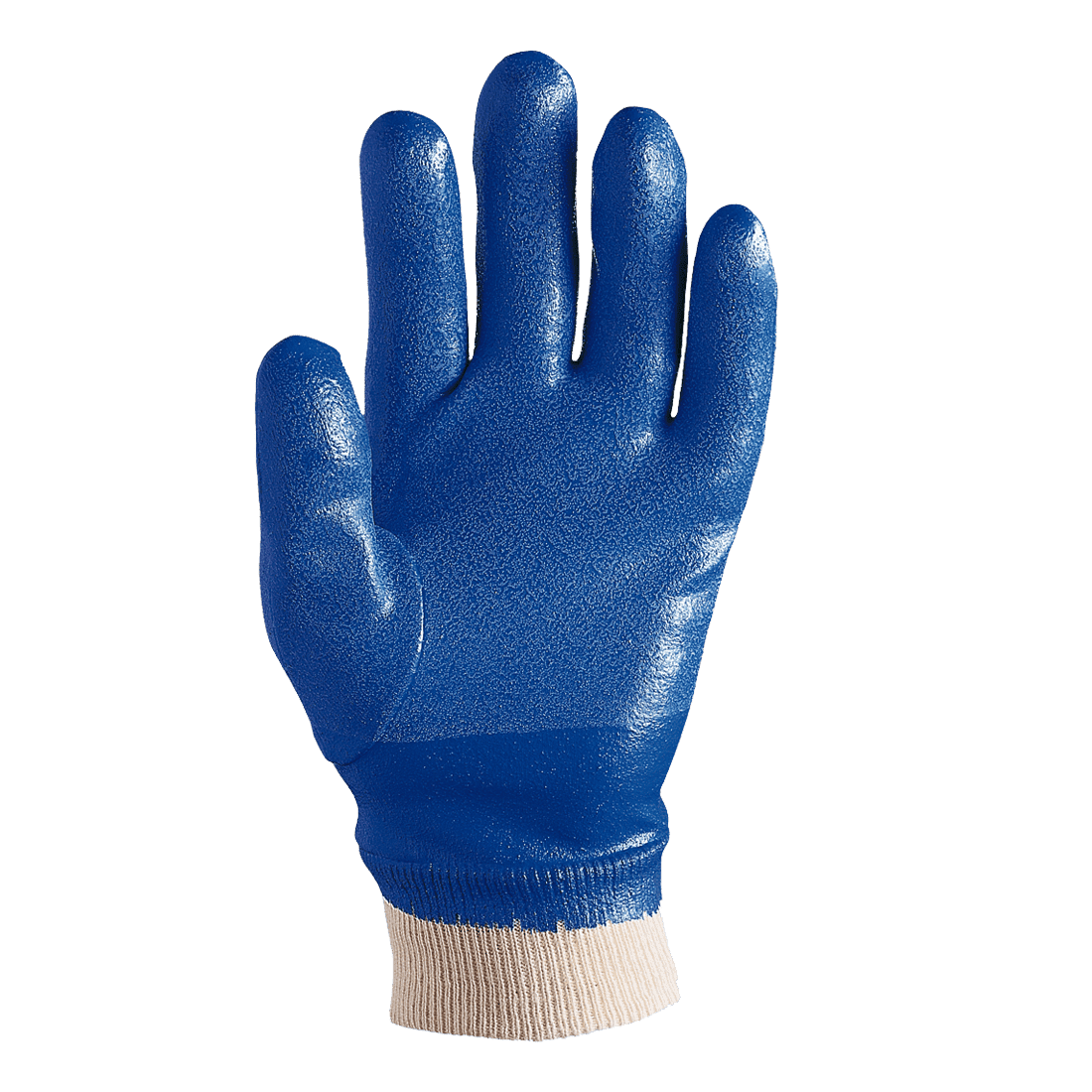 Nitril kesztyű, rugalmas, szövet csuklórésszel. Számos kémiai anyaggal szemben nyújt védelmet. Rugalmas és kényelmes viselet.