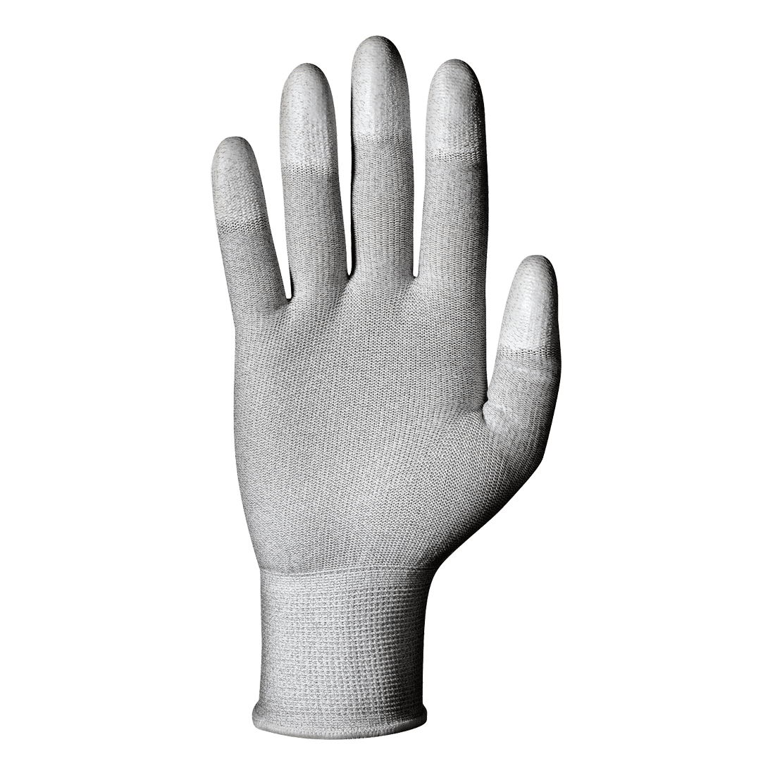 Antisztatikus tulajdonságokkal bíró, extra finom nejlonból készült kesztyű, csúszásmentes poliuretán borítással az ujjvégeken, rugalmas csuklórésszel.
