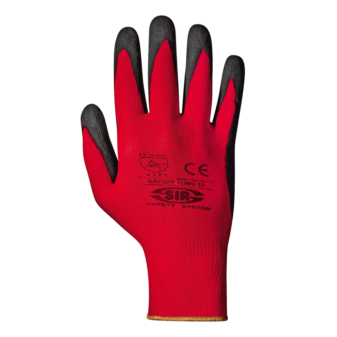 Nejlonból készült, mikro-porózusos nitril hab borítású kesztyű, rugalmas csuklórésszel.