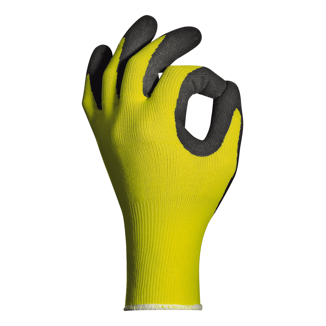 Nejlonból készült, rugalmas latex hab borítású kesztyű, rugalmas csuklórésszel.