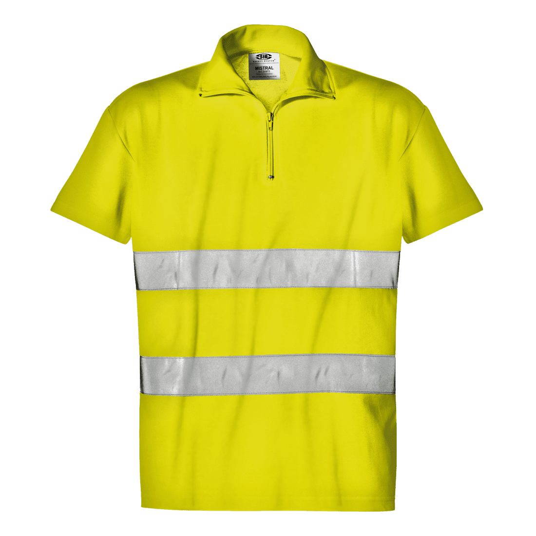 Galléros, cipzáras, láthatósági póló 50% pamutból és 50% poliészterből (220 g/m²); fényvisszaverő csíkkal a mellkason.