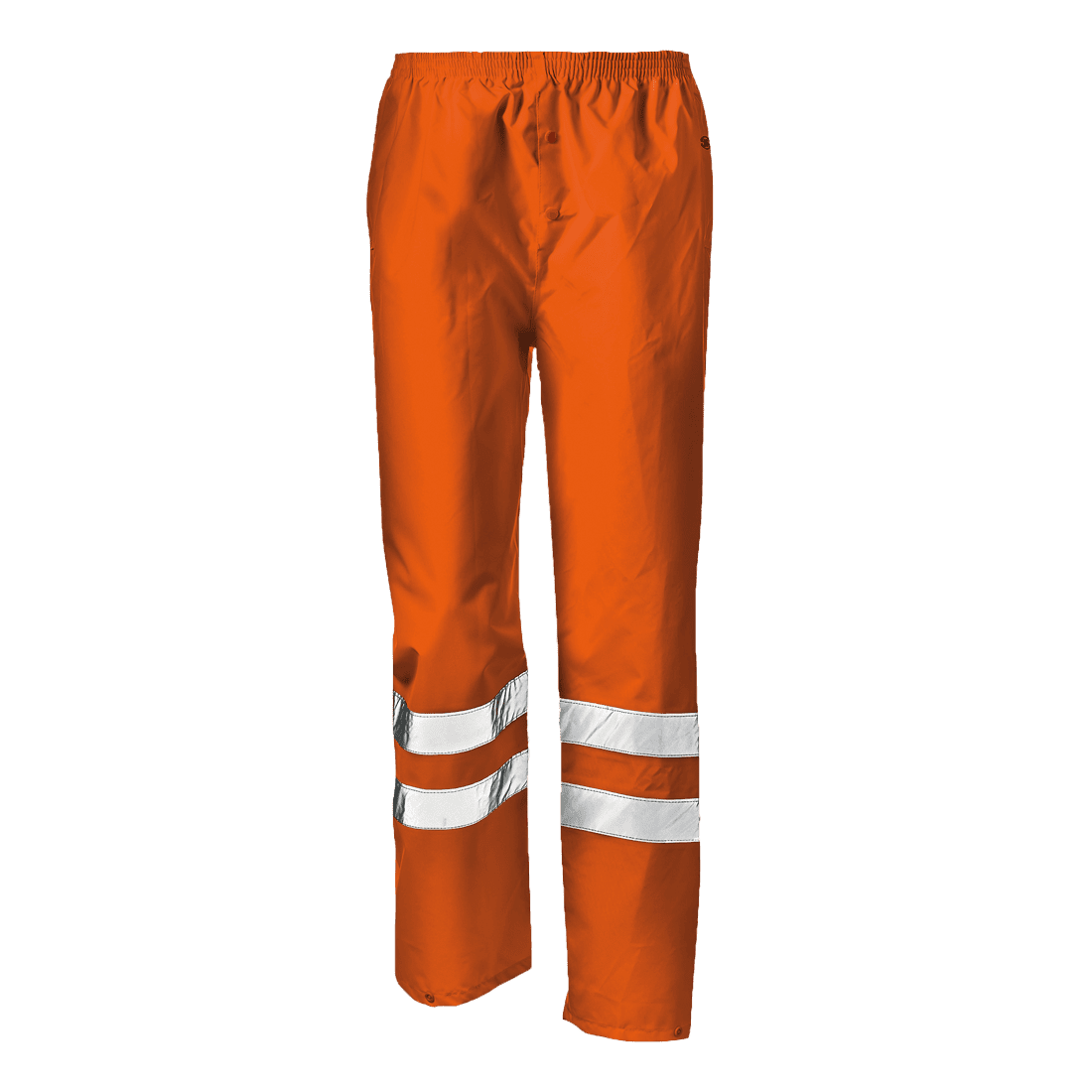 Láthatósági nadrág, patent záródással; rugalmas derékrésszel; patentos záródás a bokáknál.