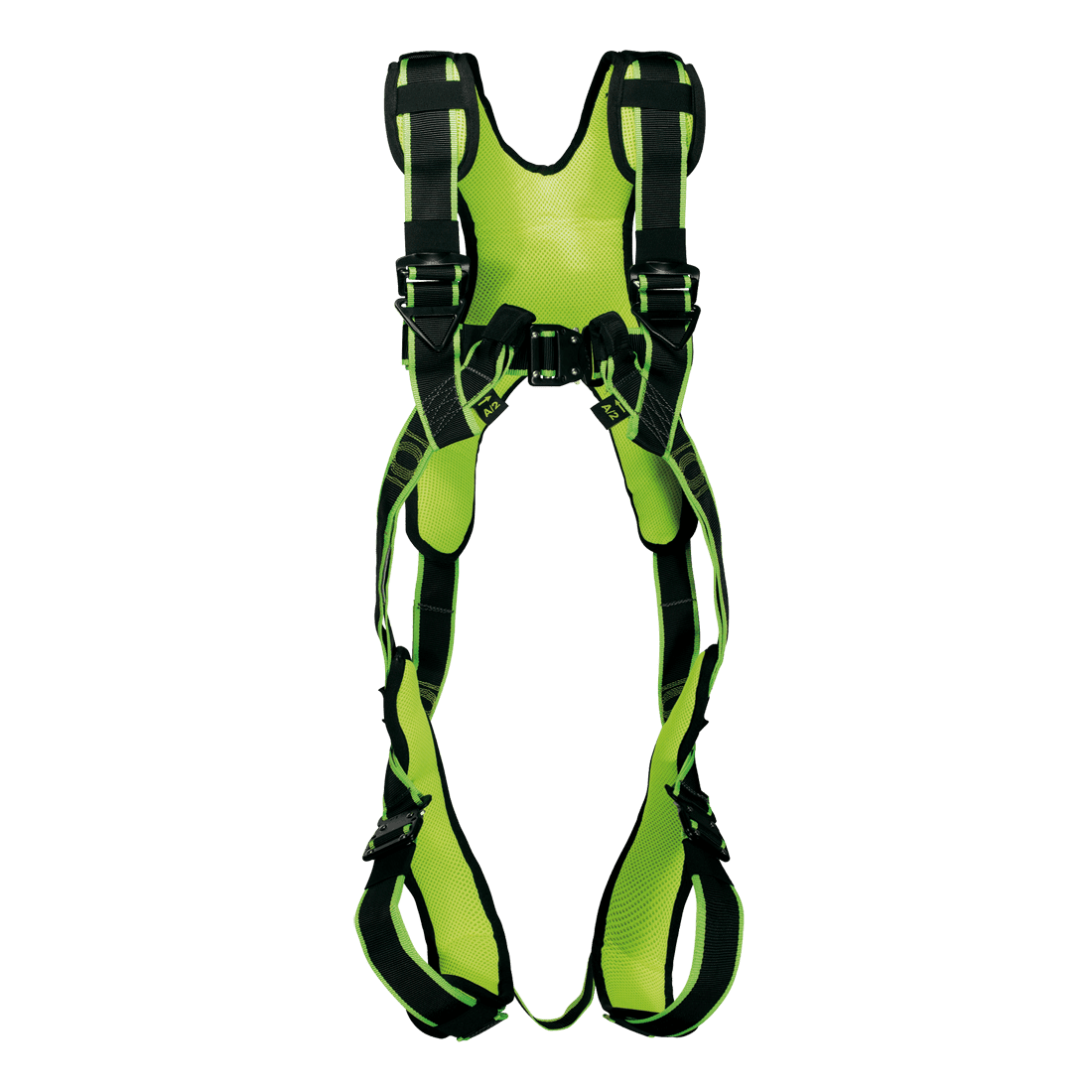 Kikötési pontok: 2 db hevedergyűrű a mellkasnál, 1 db D-gyűrű a háton. Állítható mellkasi pánt és lábpántok. Párnázott váll- és lábpántok a nagyobb kényelemért. A lábpántok gyorscsatokkal vannak ellátva. Egy kézzel is könnyen állítható pántok.