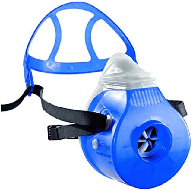 A félmaszkot egy természetes gumi membránnal ellátott inhalációs szeleppel, és a szűrőn keresztüli kilégzés megakadályozására szolgáló kifújó szeleppel, valamint egy természetes gumiból készült membránból, álló és a merev test által védett, a kifújt levegőt kiengedő szeleppel látják el.